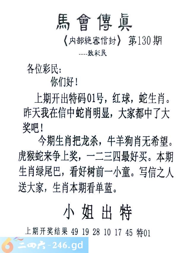 130期:首发推荐:≮馬會傳眞≯→(香港正版)